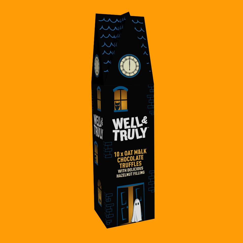 Crack it open to reveal 10 melt-in-your-mouth oat milk chocolate truffles, each hiding a wickedly smooth hazelnutl centre.