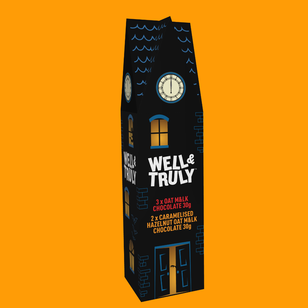 Each haunted tower is filled with 10 delicious melt-in-your-mouth Oat Milk Chocolate truffles with a smooth hazelnut centre.